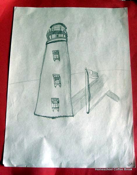 Lighthouse and Flag, pencil sketch, September 2012 |